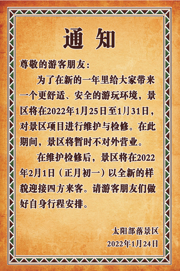 2022年1月25日-2022年1月31日閉園通知